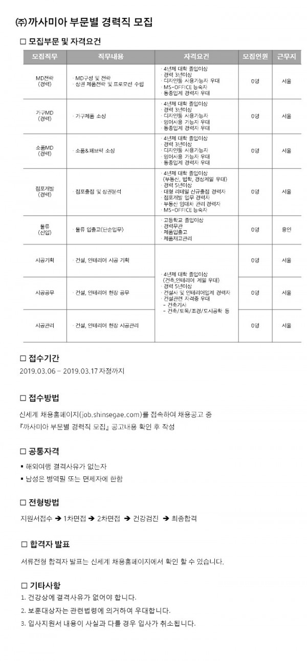 부문별 경력직 채용공고