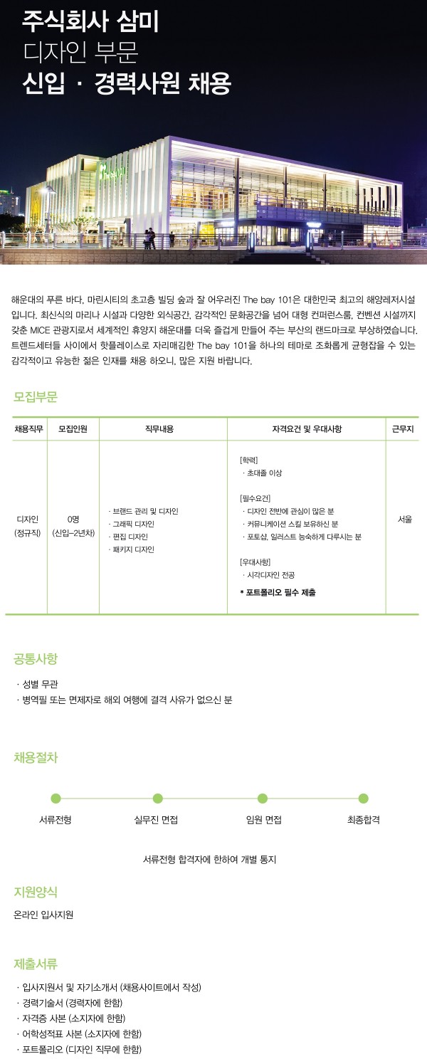 디자인 부문 신입 및 경력사원 채용