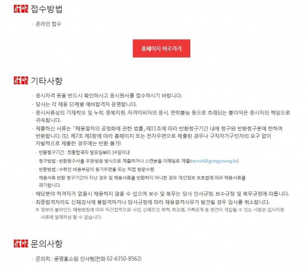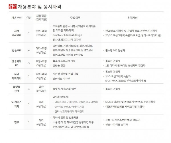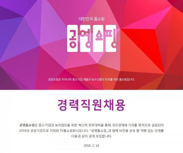 공영홈쇼핑 경력직원 채용