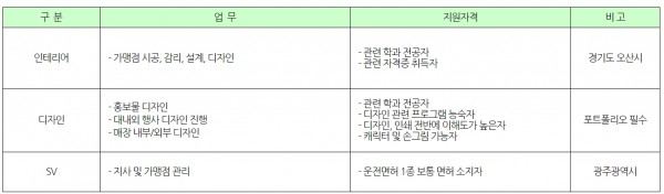 - 홈페이지 (http://www.kyochonfnb.com/recruit/list.asp )의 ''인재채용'' -