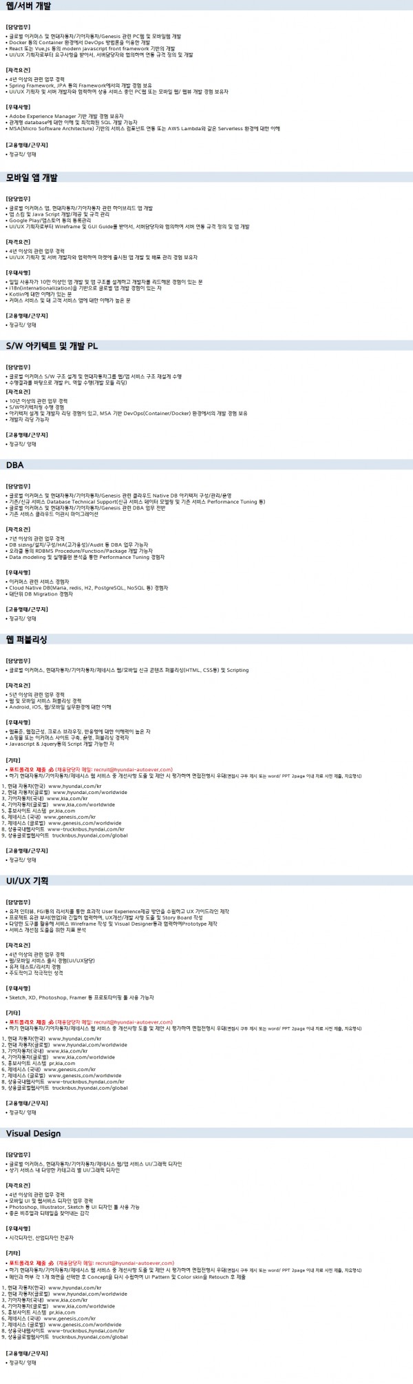 웹/앱 개발자 및 UI/UX 경력사원 모집