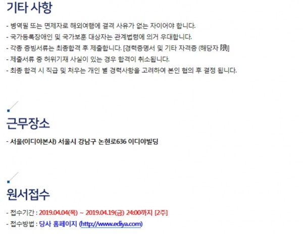 + 문제가 있는 구인정보는 관리자 이메일로 공고번호와 함께 신고해 주세요.