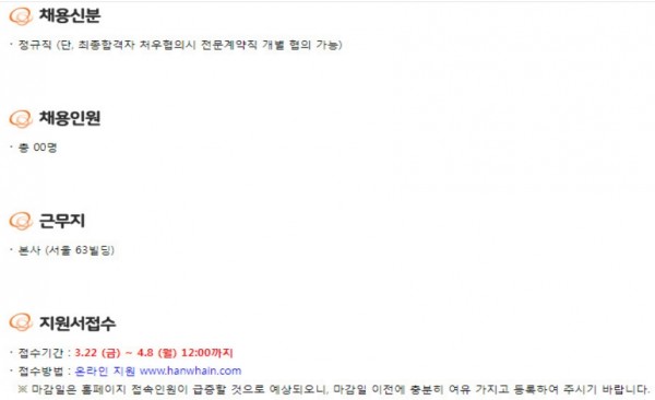 한화생명 [IT/디지털 전문인력] 경력사원 특별채용