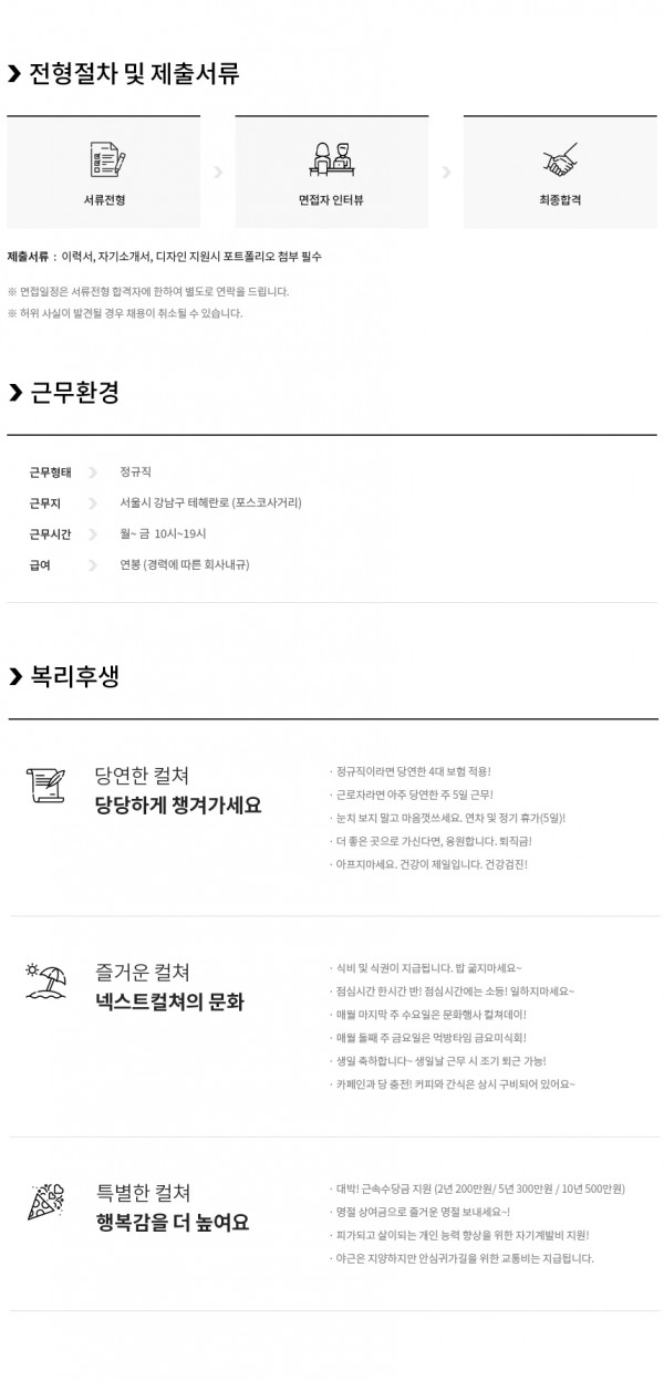 + 구인정보와 채용과정의 문제에 대해 크레이티브는 어떤 책임도 갖지 않습니다.